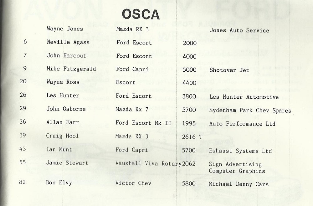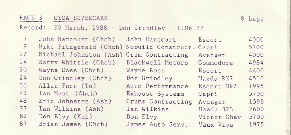 These are all scans from the same program, Ruapuna 27 Nov 1988.I'll scan others just to give an idea as to who was racing at any given time.Attachment 23830
