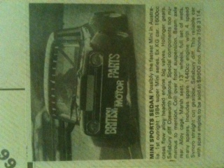 Will ask Phil for any pics he has as a starter. Was pale blue clubman sports sedan with xflow head. Had some thin red stripes down the side and over the flares.