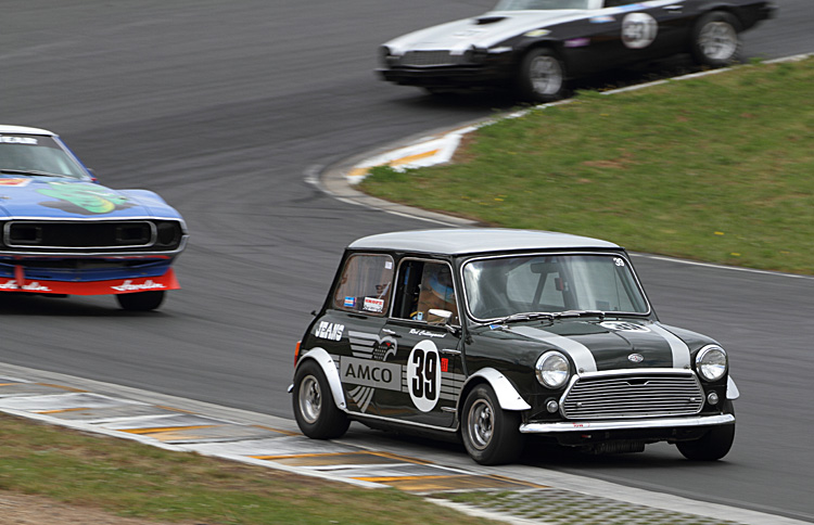 Yes Dale, we did have some 'issues' with the AMCO Mini over the second weekend. It was fine with me on the first weekend, but then my driving could be best described as 'fast' rather than racing!! The cooling of the water and oil in the new engine is woefully inadequate. We have tried very hard to keep everything in period, but old Cooper S radiators were never up to much in their day, and are certainly hopeless now. But, we have the technology, I think, to correct the problems, which we probably would have found out if we had had time for a test, instead of using the Festival as a test session. Never mind, Angus had a huge amount of fun racing with the American Muscle..... is just the sort of challenge that he likes, and gave the crowd something to cheer about.....the little guys against the big guys. I also have to complememt your drivers in the over 3 litre class, as it was sometimes difficult to see the Mini as a number of your class were left-hand drive, and through some of the corners was a pretty close thing, but thankfully there was no contact. I would also like to take this opportunity to thank you Dale for being such a good co-ordinator, giving your time generously to chat to all sorts of people asking silly questions and being patient with them, when I'm sure you could have been checking tyres or oil or something. The whole weekend was a credit to you all......we will be back with a cooler car next time!!!
