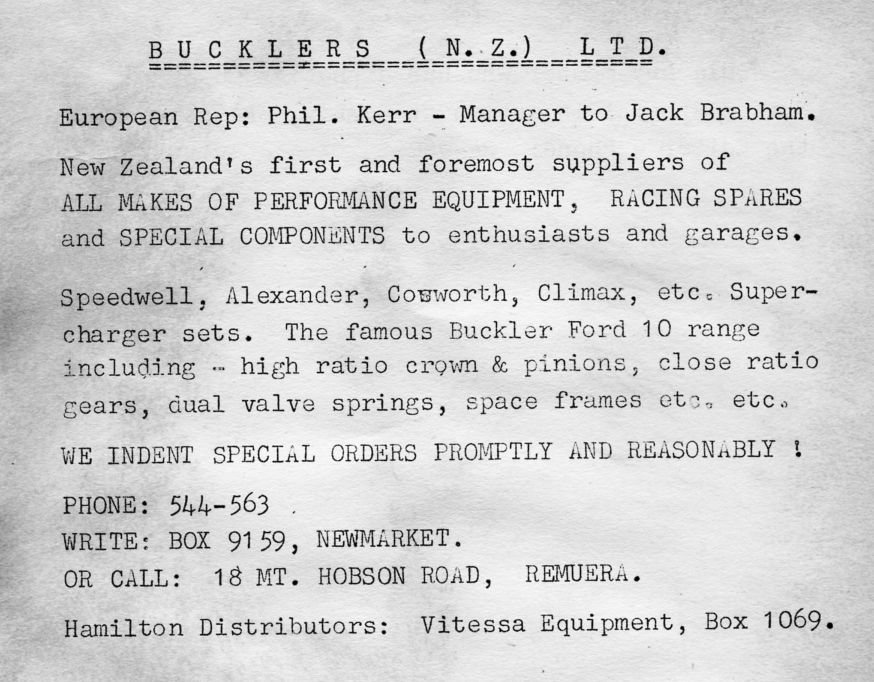 Bucklers at Pukekohe 1966 and the Orchid Special