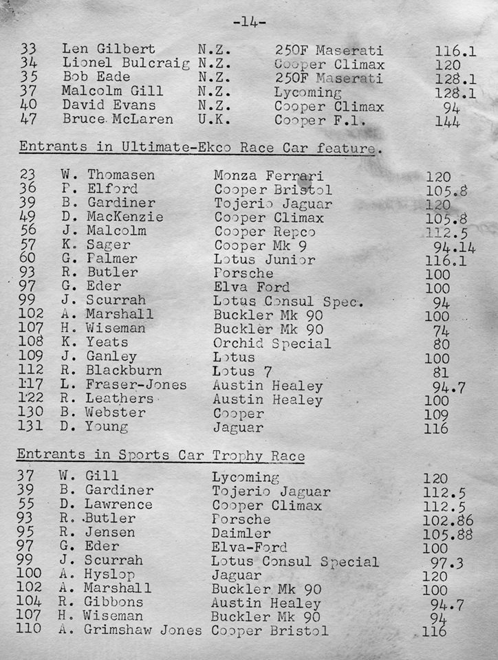 Milan Fistonic may well have the entry list - was either an " Auckland Car Club " or " Northern Sports Car Club " National Meeting - must check my " borrowed " photos and scans..
