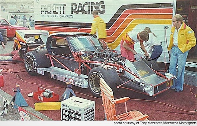 He joined forces with Bob Riley and the team that would later make a name for themselves as Protofab. The chassis was built by Charlie Selix and Gary Pratt (later Pratt and Miller) from large two-inch chrome-moly tubing, using extensive triangulation for strength." (Andy Bolig.)
