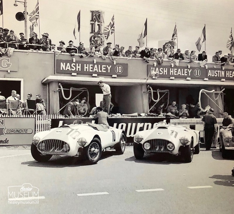 The first time Donald Healey Motor Company had two very different branded cars at Le Mans, Nash Healey and the new Austin Healey 100.