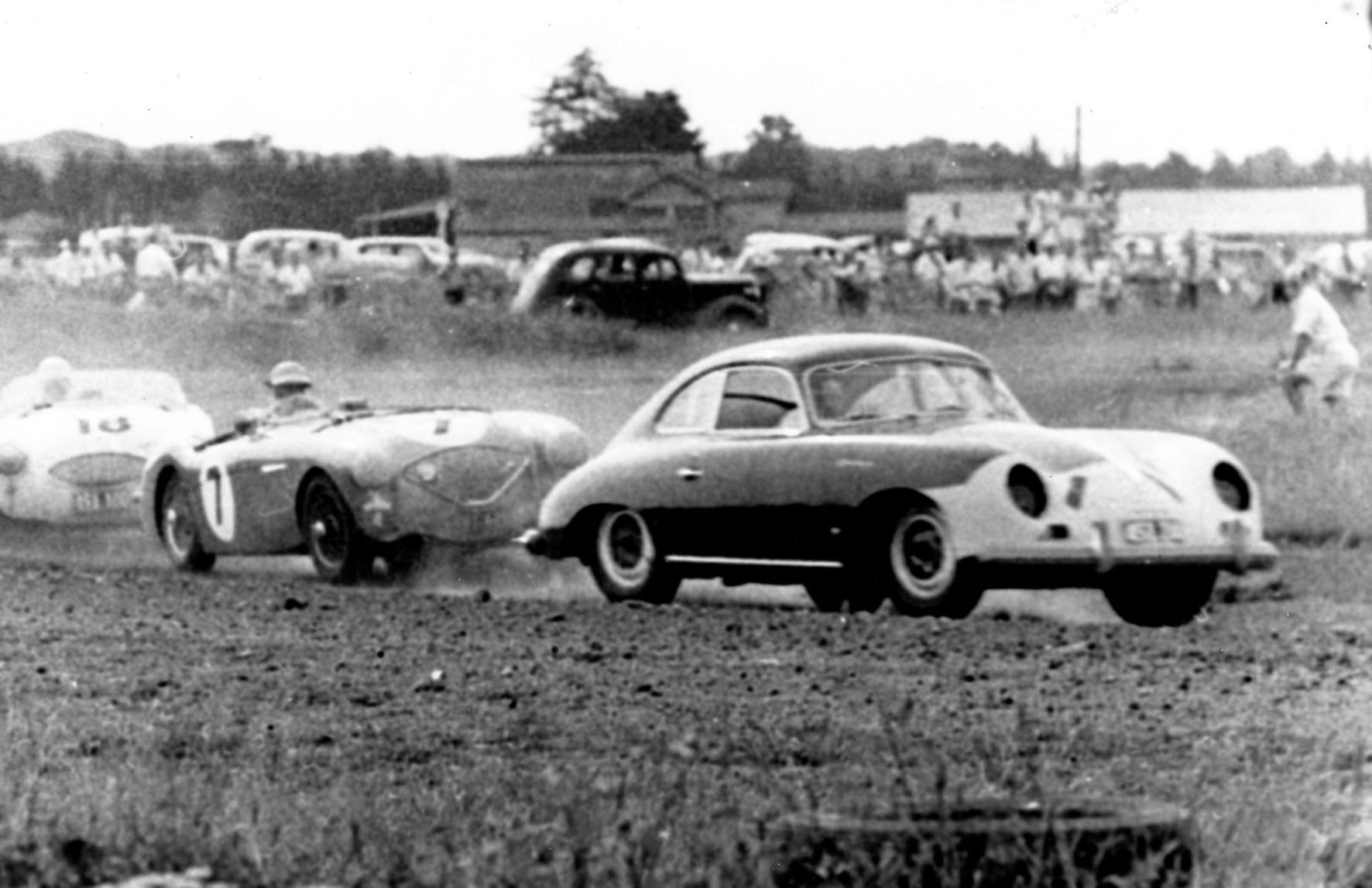 Austin Healey at Levin 1st meeting 1956 and Dunedin 1957