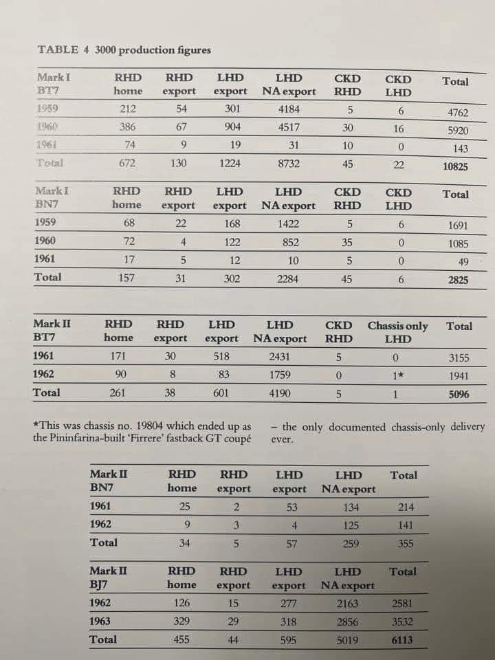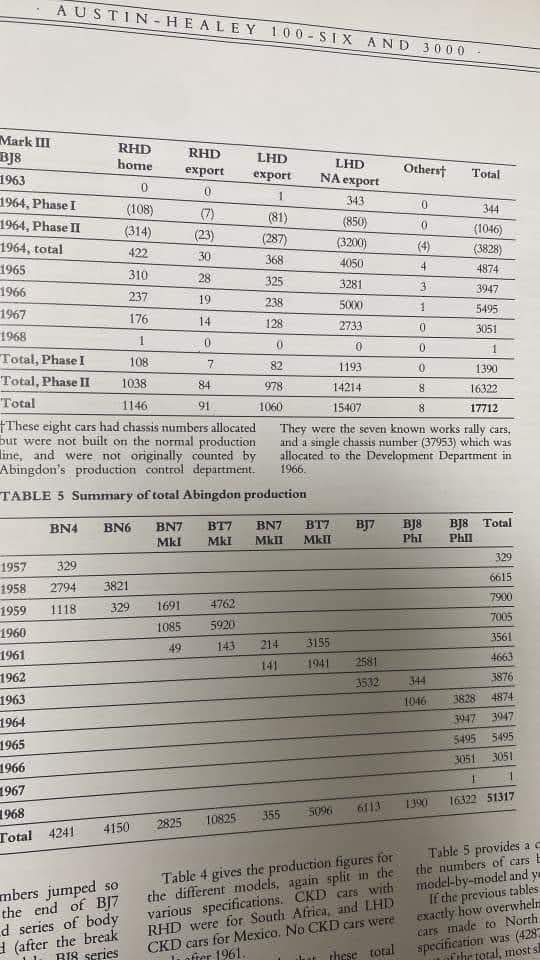 AH 100 Six and AH 3000 Production figures 1957 - 1968