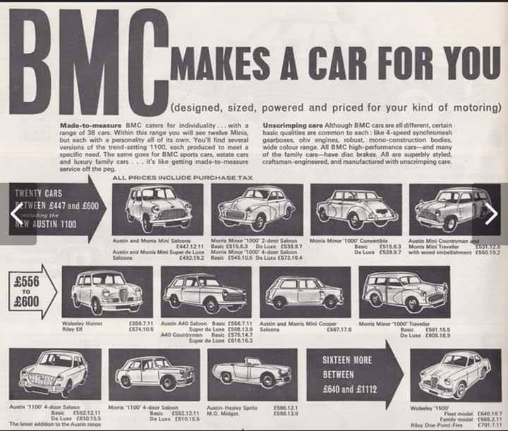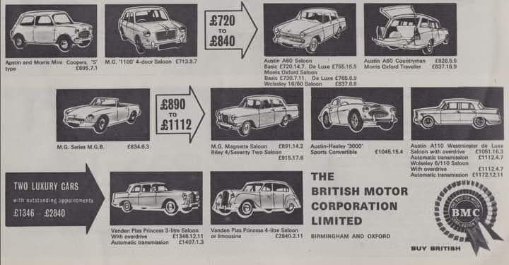 BMC Range as advertised in I am guessing 1962 or 1963 - as the AH Sprite is a Mark two, but with side screens not wind up windows that came in 1964/65.