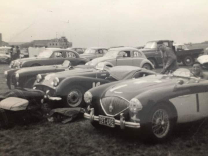 E Tims [ Joss Tims ] in an Austin Healey 100 that he owned prior to the 100S.