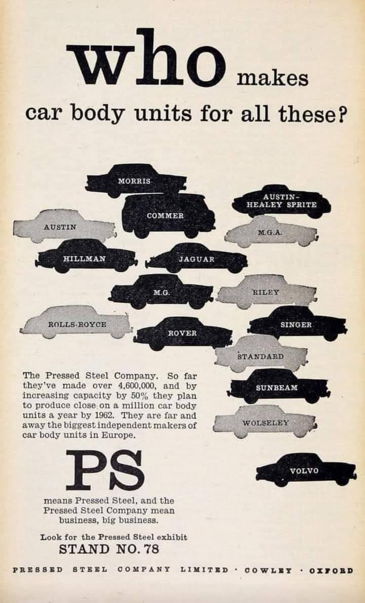 Pressed Steel Company Ltd, of Cowley - advert from around 1960. - They mention what they hope to achieve in 1962.