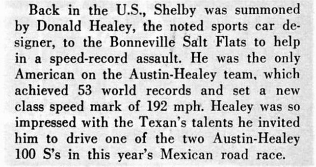 Will post some recent finds about the 1954 Carrera Panamericana Austin Healey 100S that Carroll Shelby drove and crashed.. there are stories of the car being rebuilt, but believe it will be a replica as the Chassis was junked by Donald Healey Motor Company. The mists of time have elaborated on the story of the car - a 1954 Special Test Car - SPL 256 BN.