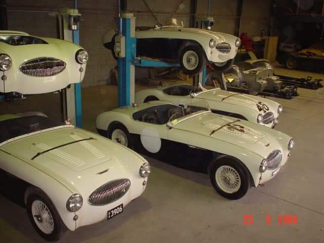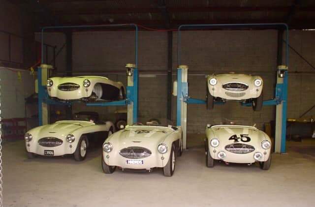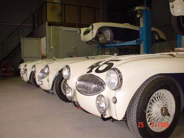 In May 2004 5 Austin Healey 100S all in the White over Blue colours were together.