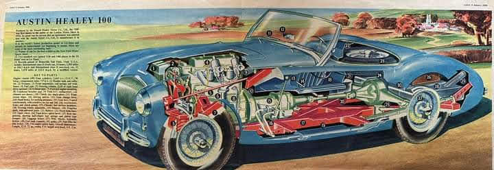 AHS3905 and a Cutaway Drawing of an Austin Healey 100.