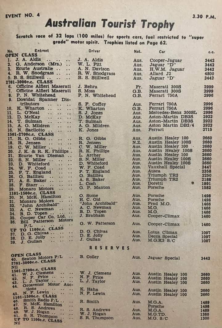The Australian Tourist Trophy Race - Melbourne 1956..
