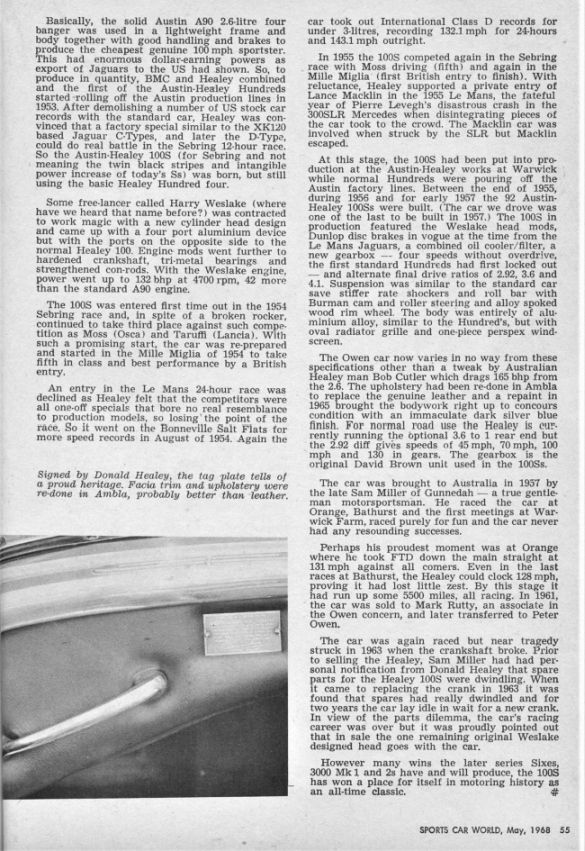 ** Extract from the Book by Donald Healey and Tommy Wisdom " The Austin - Healey " published in 1960 states.