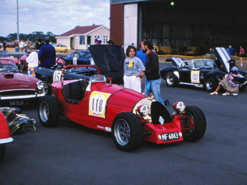 Mal Clark's Zephyr ute (Rover V8 power?) which I think was sold to Japan. Richard Atkinson's plywood chassis V6 Marcos in the background, now owned by Phil Foulkes of Formula Ford fame. Possibly for sale.