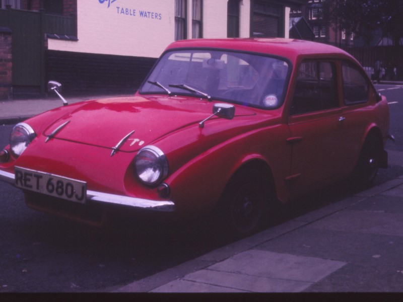 First 2 might give someone apoplexy. First was probably taken about 1970 and the rights to reproduce these cars is now held by a Nottingham firm. Ironically, this particular car probably still exists, as it is shown on their website gallery, now with a black roof - and my pic was taken not too far from their current works.