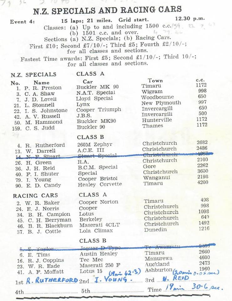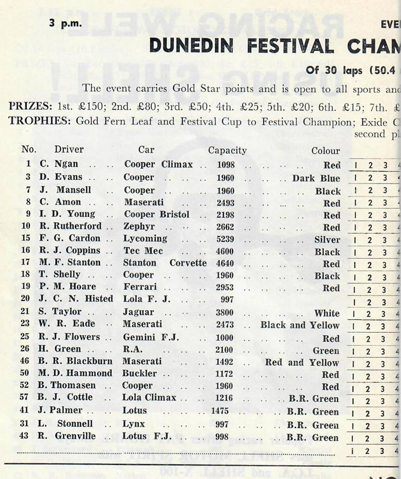 The entry list, not sure if in the right chronological order January February were very busy months, as there had already been Ardmore the GP, Levin ?? and Ohakea !! someone will assist here ?? Please