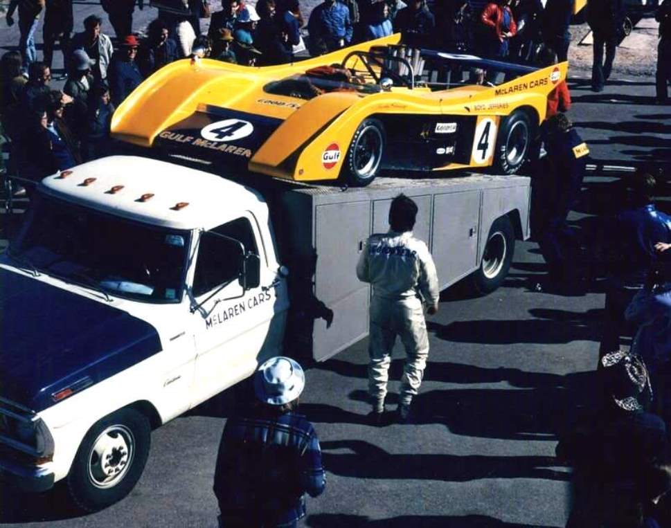 The other car on the transporter is a McLaren M7D # 16 with a Alfa Romeo T33. 3.0 V-8 engine driven by Andrea De Adamich.
