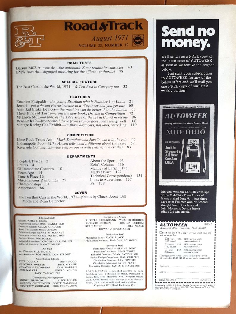 Road and Track 1971 and 1999.