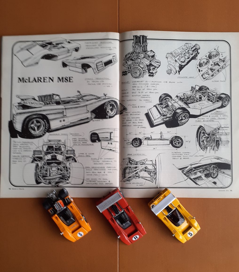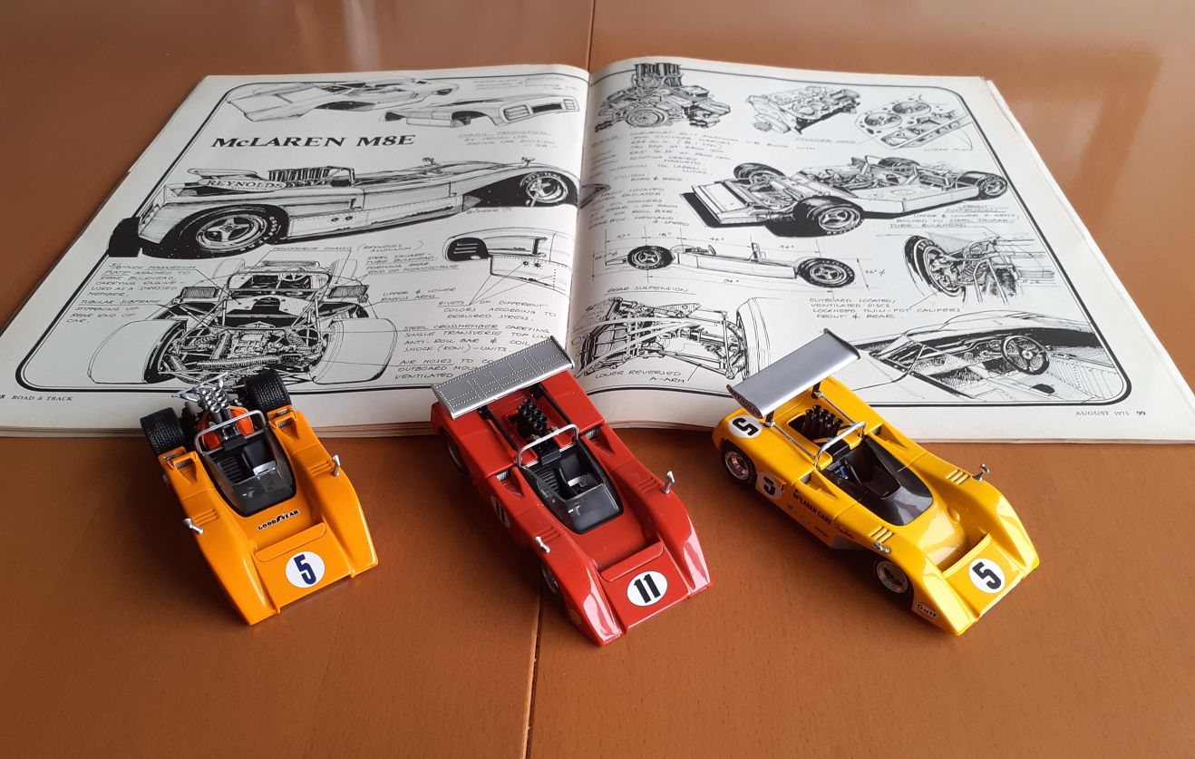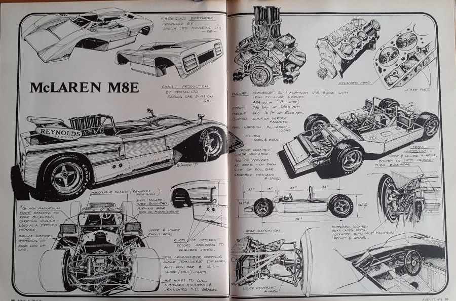 The recent purchase of the August 1971 Edition of " Road and Track " has an article on the McLaren M8E, the car that was raced after we lost Bruce McLaren in 1970.