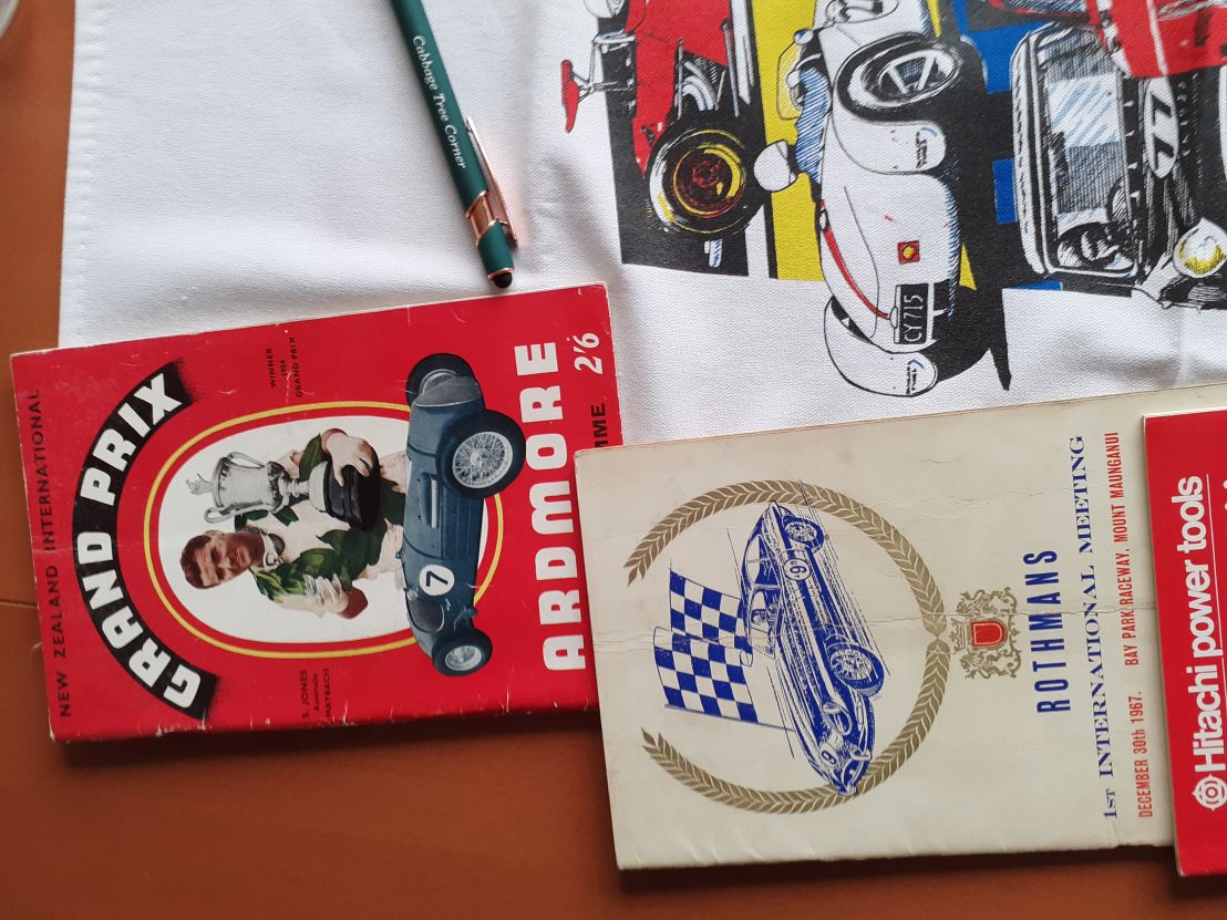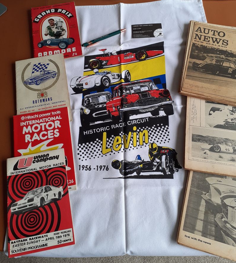 Parcel arrived yesterday from Kallangur QLD, it is near Lakeside Raceway and it included Motor Racing Programmes, Ardmore 1955 NZIGP - the second Ardmore, Pukekohe 1967 the 14th Grand Prix, several Baypark 1975, 1976 and the last 1995 - as well as both Telecom Classic events from 1993 and 1994. Tea Towel of Levin and a " Cabbage Tree Corner " Pen were a bonus.