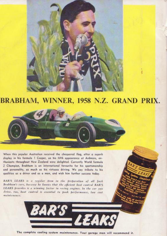Well there you go, I knew there was an Historic Motorsport connection with Bar's Leaks somewhere. What an endorsement for a product from no less than the great Jack Brabham. I wonder if he got a couple of dollars/pounds for that little gem. Of course the other blurb on the can included the words..'.this is not a permanent repair'.....well mostly it was, until something drastic happened. But just remember that the cooling systems then were not pressurised, so you could get away with a lot more, and there was about 3 times as much water to play with compared to a modern system, so you could go a fair way before there was trouble.