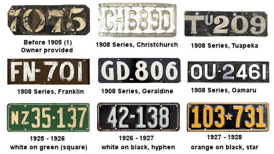 all cars in New Zealand, including Racing Cars had to have a number plate, remember seeing them inside saloons on the floor and elsewhere ;.. a series of the plates over the last Century or so .. part of motoring heritage in NZ..
