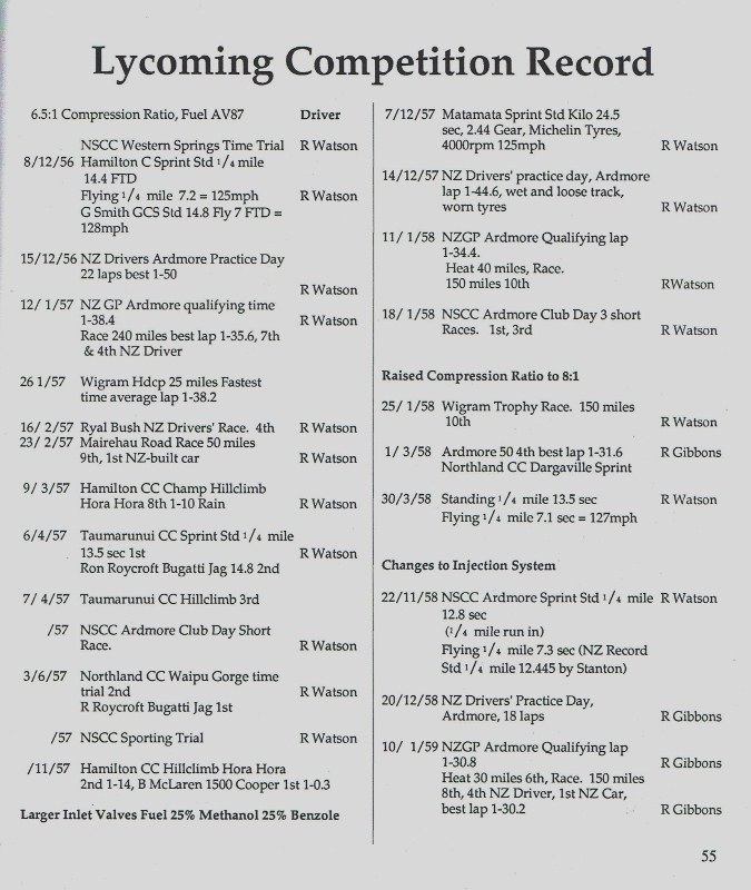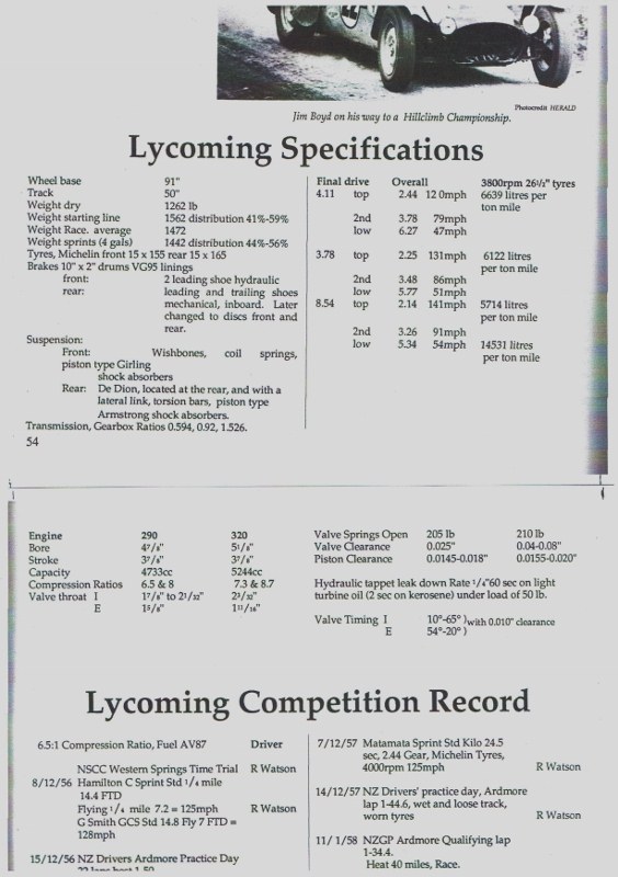 I saw the car at the Hamilton Car Club grass track races at Waharoa on 11th March 1967, had just bought my first car a 1960 Mini [ Austin Seven ], had seen the Lycoming at previous events at Pukekohe in 1965 and 1966 and at the 1967 Grand Prix meeting. Have a couple of photo's from 1966.