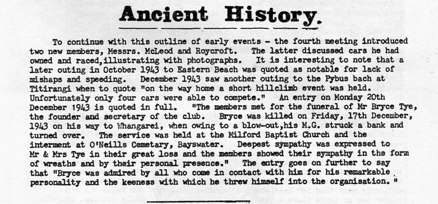 Ralph was a member of Northern Sports Car Club in the 1950's when he built the car and a regular competitor at NSCC and other Clubs events, including Auckland Car Club, Hamilton Car Club, Taumaranui Car Club, as well as competing at the NZ International Grand Prix, the Lady Wigram Trophy races, NZ Drivers Championship events at Ryal Bush, Mairehau Road Races and elsewhere.