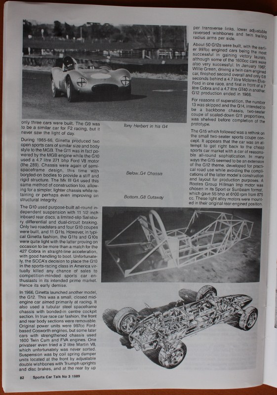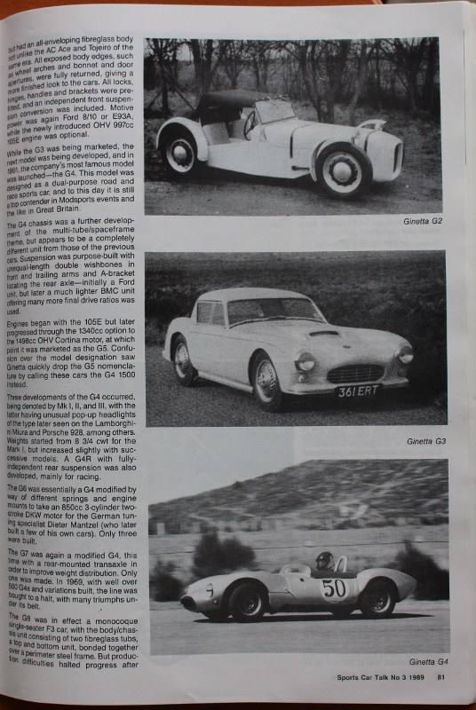 Here is a bit of Ginetta History from Richard's article. from issue 3 the 1989 Edition.