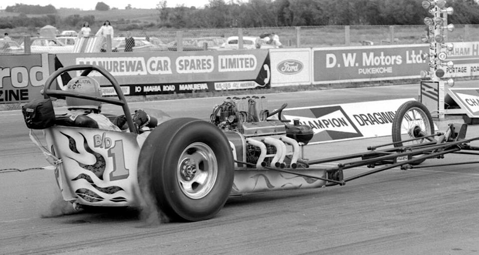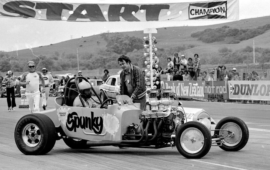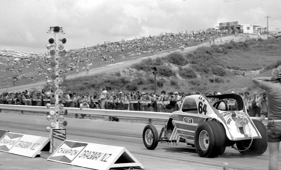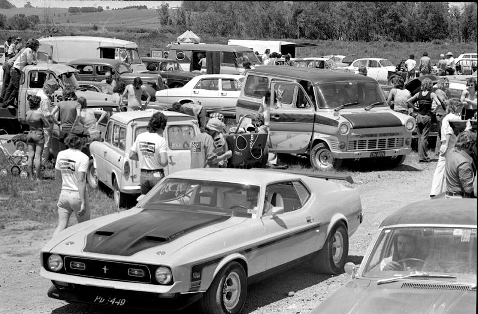 I just love this great shot of a very crowded Meremere pit area. Check out the vehicles pictured here. The Mustang looks epic, as does the custom Transit van. I sure love '70s custom vans; flares, fat mags with raised white lettered tyres, lake pipes, and, of course, lots of wild air brushed paint, including Warlocks, desert scenes, and/or naked ladies.