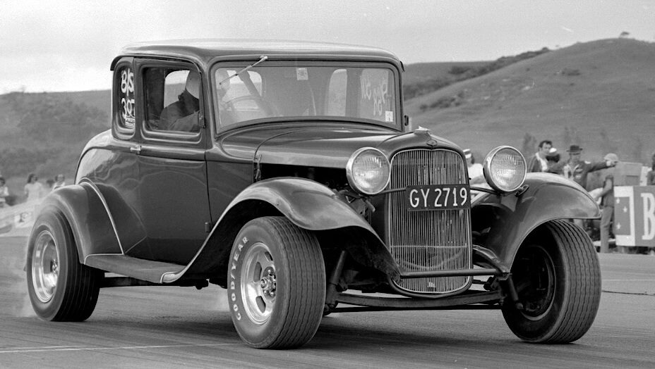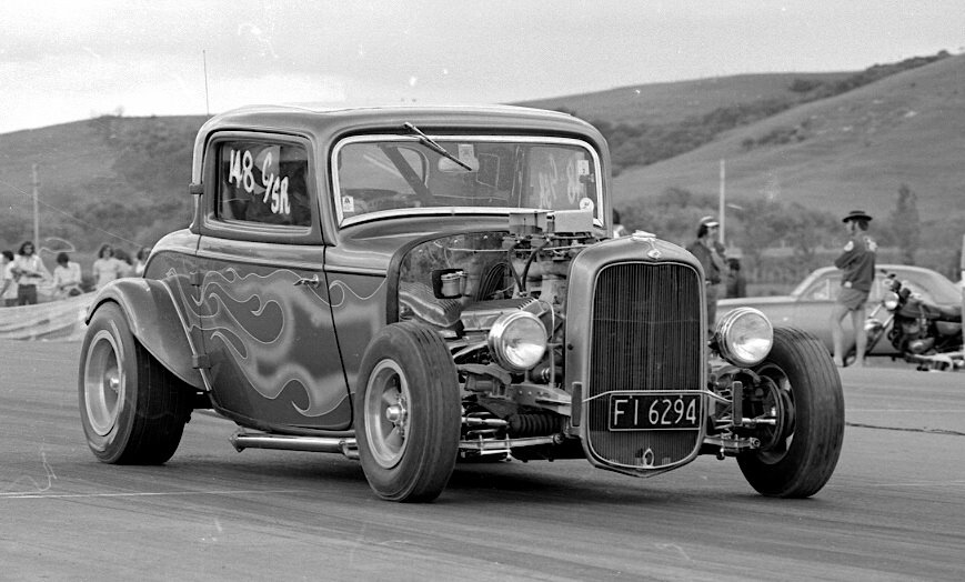 Curly West with what appears to be a channelled '32 Ford coupe.