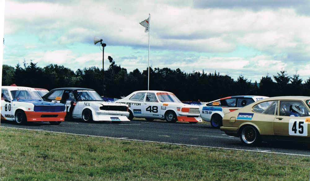 Re the Findlays Bakeries 1200 coupe I bought it off Steve Emson (who had won the 0 - 1300 class in the Bank of New South Wales series in 1976) as Shellsport 2 litre made my 13B Mazda RX3 coupe ineligible. The 1977 season in the Datsun I ended up 6th and then the following season I bought one of the Nissan Cherry motors from Reg Cook, drysumping it and moving it back in the car as well. I ended up 3rd in the 1978 series behind Reg and Bryce Platt. Our main problem was shredding gearboxes as we were not allowed to use the 5 speed competition box. At the same time Greg Lancaster built another Findlays car from a spare coupe I had bought using my previous season's motor and spare parts we had amassed. The following season Greg ran the car in Sanyo colours and it was later sold down in Palmerston North. The 1979 season I only contested the North Island rounds and ended up 6th in the series again. After that I only raced it at Pukekohe occasionally and the Datsun sat around until the mid 80's and as I was racing a Lotus Cortina in the historics I talked my late, great friend Glenn Jones into running the Datsun again which he did successfully for a couple of seasons in Dark Green Slumbertime colours then Glenn bought his OSCA Commodore/Chev. I sold the Datsun to Brian Roycroft with Glenn's assistance and it still had the same original 1300 Cherry motor. The Group 5 "Aero" grille was not allowed in Shellsport which is why I did not use it. The same car is now owned by Duncan Hedges but has been altered a lot and I think now runs a Toyota motor. It's best time ever at Pukekohe was 1.10.6 on the old unimproved bumpy track. Cheers, Rex Findlay 0274935279