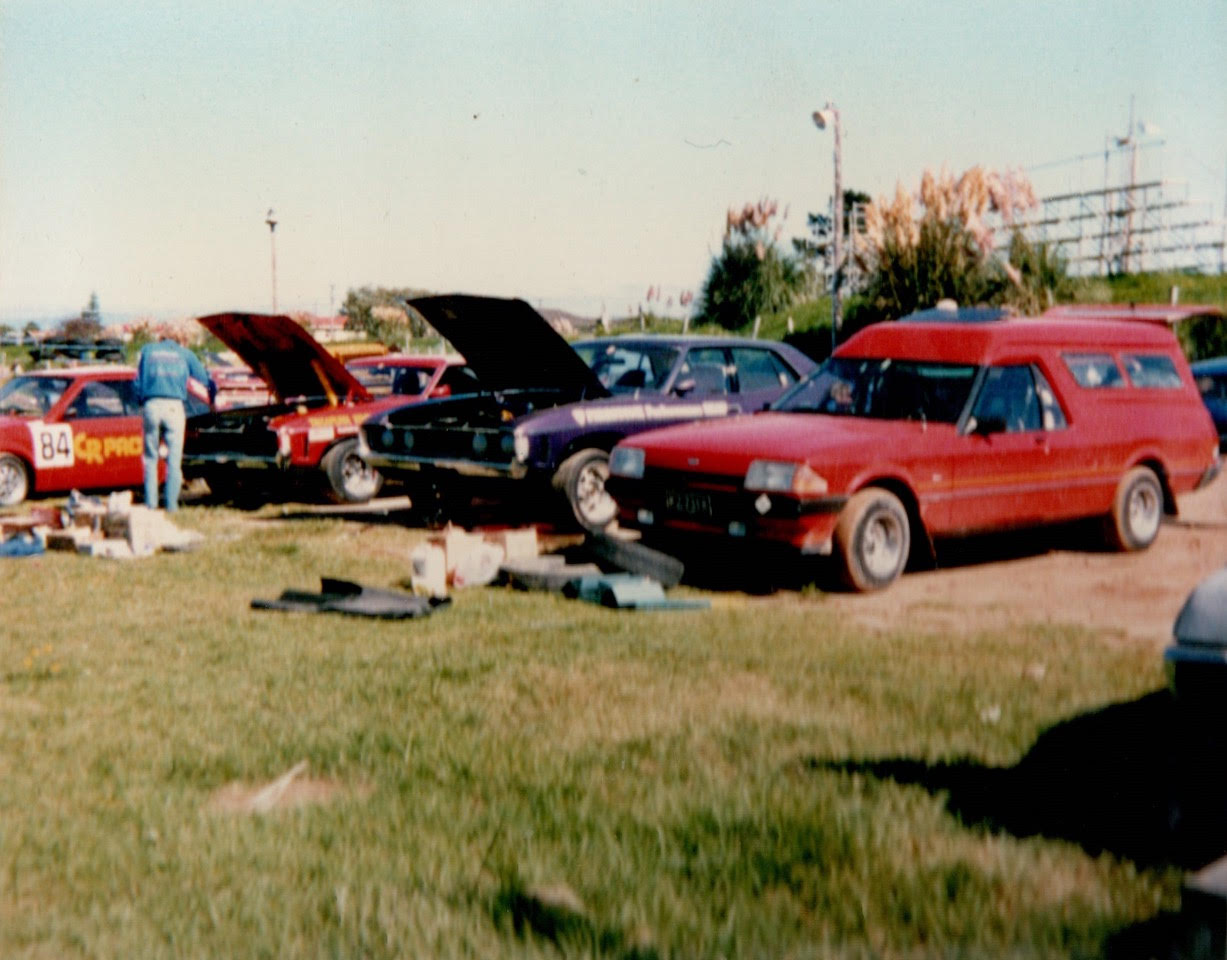 2. Pic wth Phils car on the trailer has my white Cobra beside. Phil Rudd Commodore (the one I later brought) just in view on the right.