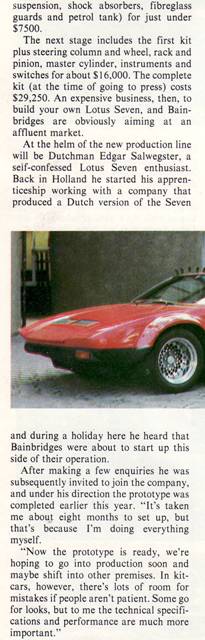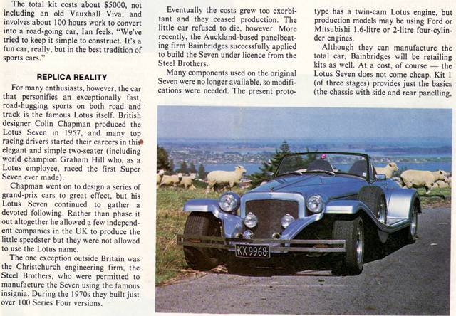 Below is all I know about the Bainbridge at this stage. I have a lot of other rumors and unconfirmed stories. It is an excerpt from the Auto Age magazine printed in 1985. A full reprint of the article has been uploaded to my thread "NZ Cars A cottage Industry as I did not think it appropriate to put it in this thread. The car shown as part of the article is an Everson Eagle not a Bainbridge.