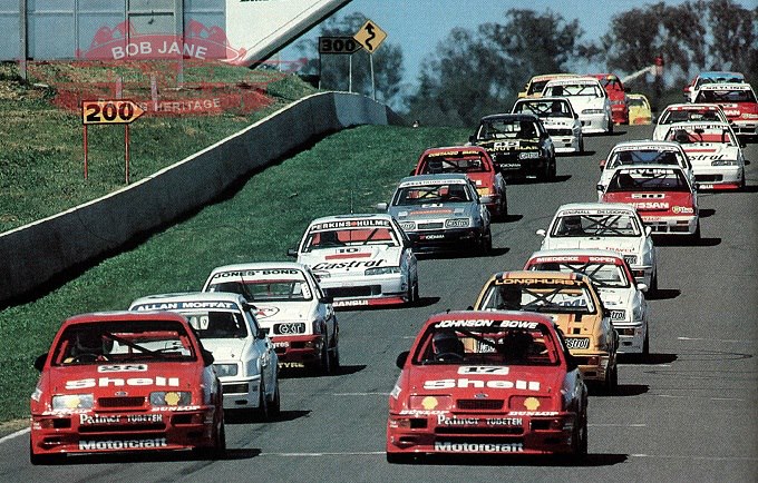 Formula Sierra! 1987 was a difficult year for any team trying to get a handle on the new Sierra Cosworth/RS500, but by 1988, it was pointless turning up at the track with anything else. Eight of the ten fastest qualifiers at Bathurst in 1988 were RS500s. Dick Johnson was running the fastest Group A touring cars in Australia by this stage, if not the world. He turned up at Bathurst with three cars after having dominated the ATCC and outrun the top RS500s at Silverstone. The other teams must have been quaking in their boots at Bathurst, but the DJR effort was a bit of a disaster. The Johnson/Bowe car was leading comfortably when it blew a rear tyre down Conrod and spun wildly, amazingly without actually hitting anything. But there was plenty of damage done as a result of the shredded tyre and high speed spin. This car was retired after 22 laps. The #28 DJR car was out four laps later with a mechanical problem. Johnson was quoted as saying "We might need to bring five cars next year", tongue in cheek, but he did expect to win this race. The sole-surviving DJR car, in which Johnson himself did a driving stint after his own car retired, finished second behind the Tony Longhurst/Tomas Mezera RS500.
