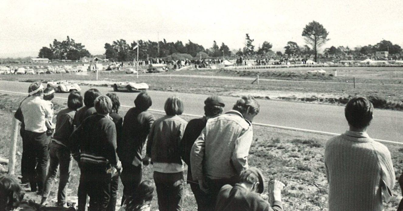 Along the back straight in October 1969 which was a fun day until the terrible incident when Barry Thomason's Brabham spun and rolled entering the straight and the roll bar caused injuries to his back and neck from which he never fully recovered.
