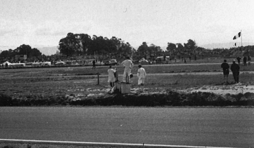 No mate. That's actually the next marshal's post in advance, halfway down the back straight, you can see the quarter-mile straight, the back of the pits and the right-hander in the background. I did flag at this spot for that year's F5000 Christmas meeting, and stood trackside with Lawrence, Goth, Grable and co whistling beneath my fluttering blue flag. OK I might have had jandals on my feet, but I had the mandatory White Coat...
