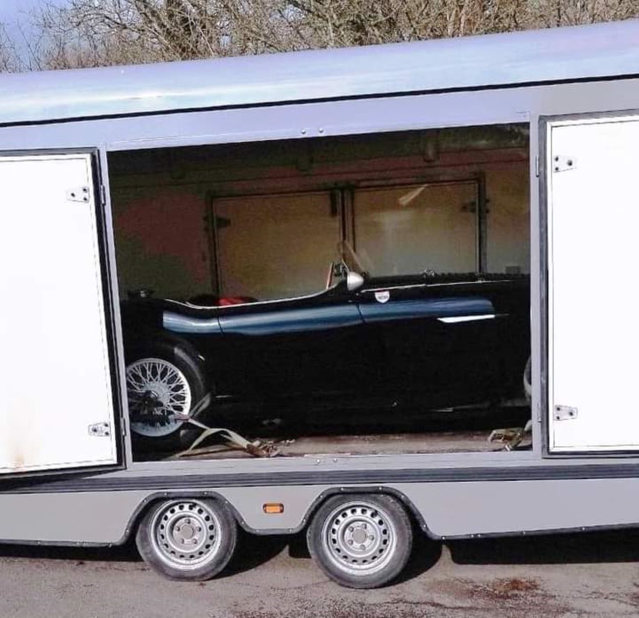 The car - well some of it is visible - in a transport trailer recently - photo from Alister Rayner - the current owner.