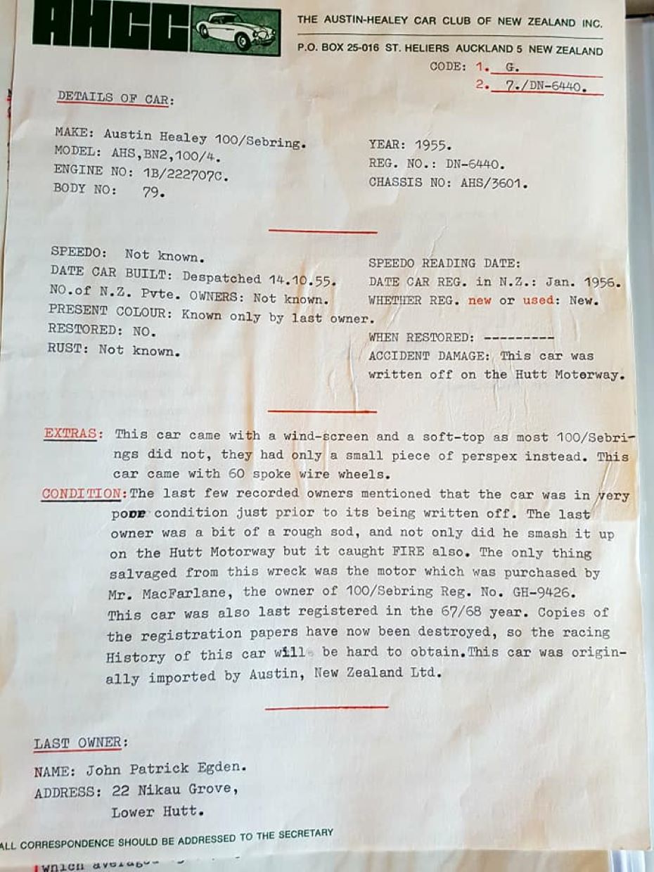 The AHCCNZ Register details written around 1975 by Jim Reece as Big Healey Registrar for the Club.