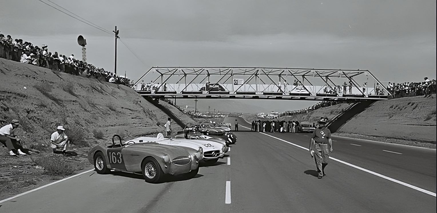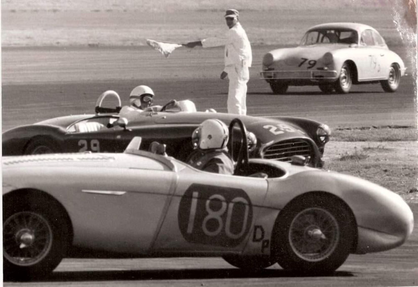 Although the original first owner is unknown, the ownership history has been continuous since early 1959, when the car was purchased by Bob Schilling from a used car lot on Crenshaw Boulevard in Los Angeles. He would race the car on and off from 1960 to 1962, until he sold the Austin-Healey to Louise Grey-Young, of North Hollywood, in 1964. It subsequently traded hands several times over the years, with other notable caretakers including well-known and highly respected car collectors Jon Savage and Craig McCaw. "