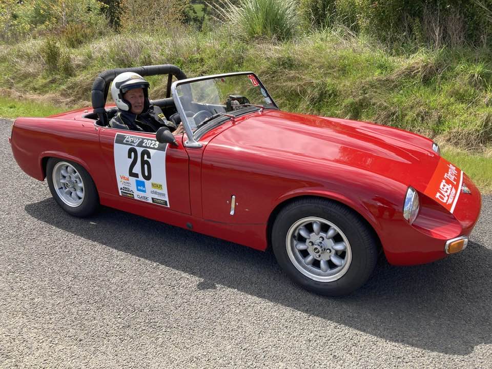 Allan Horner with his Toyota twincam powered Sprite is in the Time Trial Class of the Targa Rally which started today