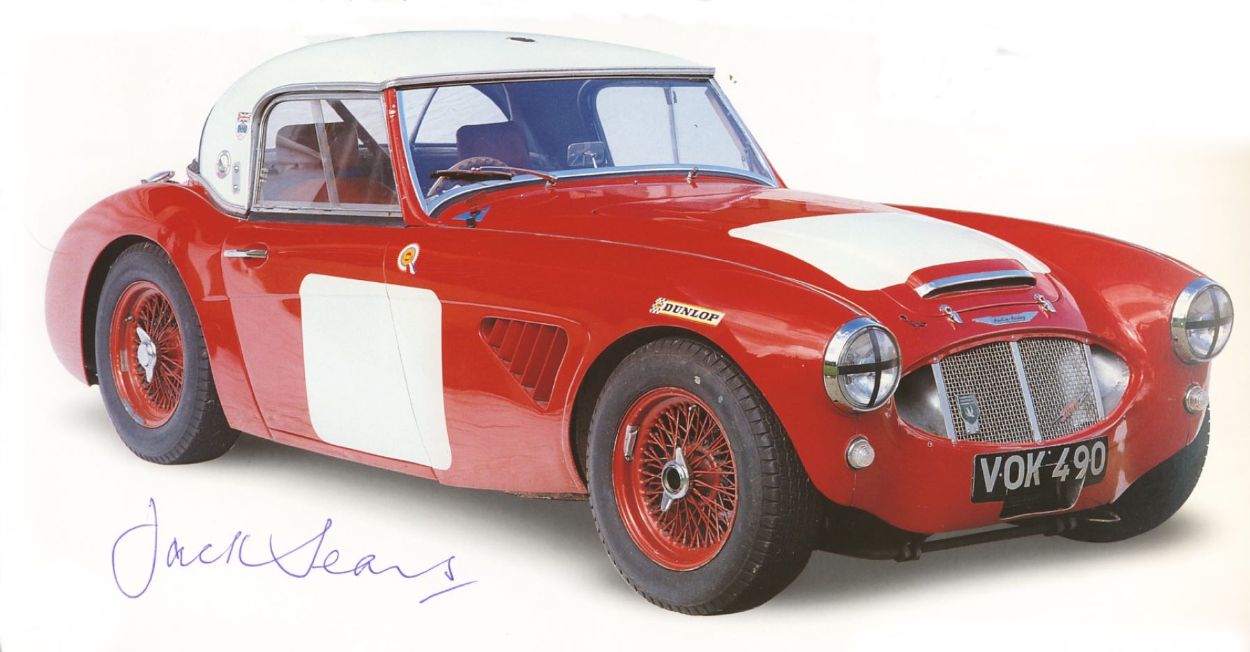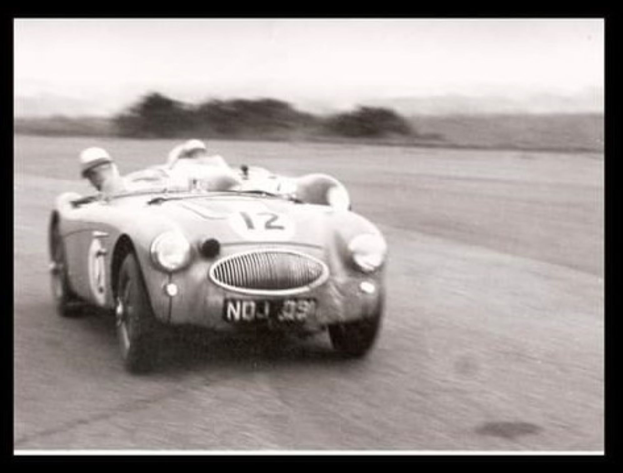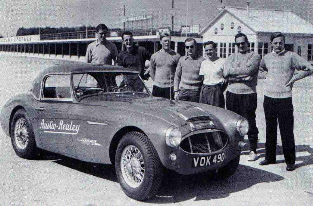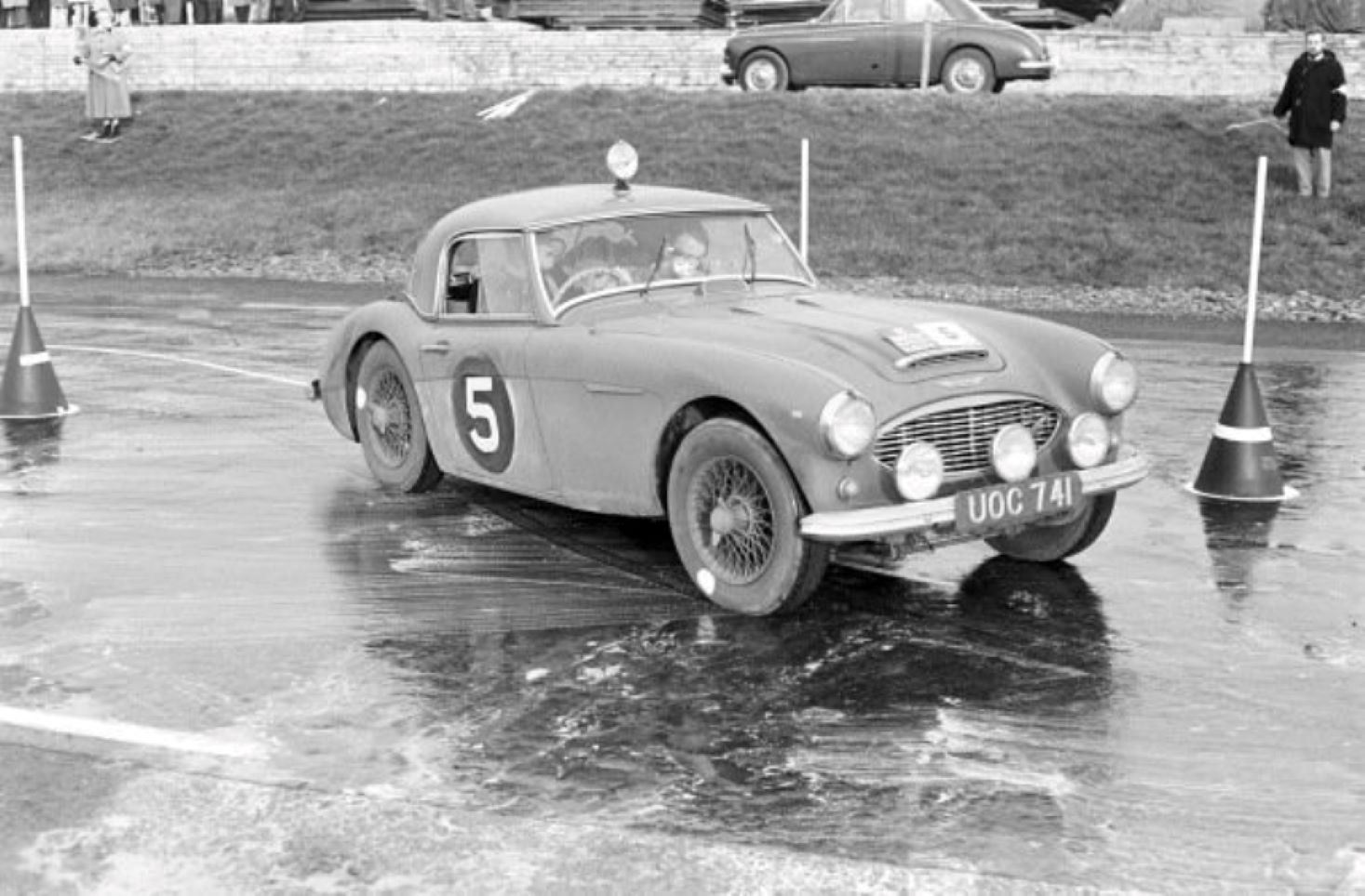 Driver was Tommy Wisdom, a long time friend of Donald Healey and had co-written the first book on the marque " The Austin Healey " published in 1959.