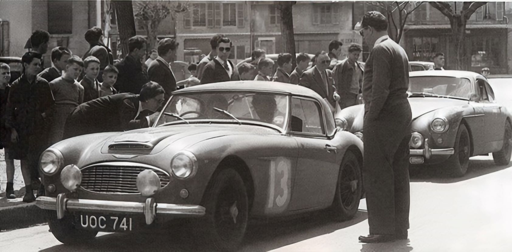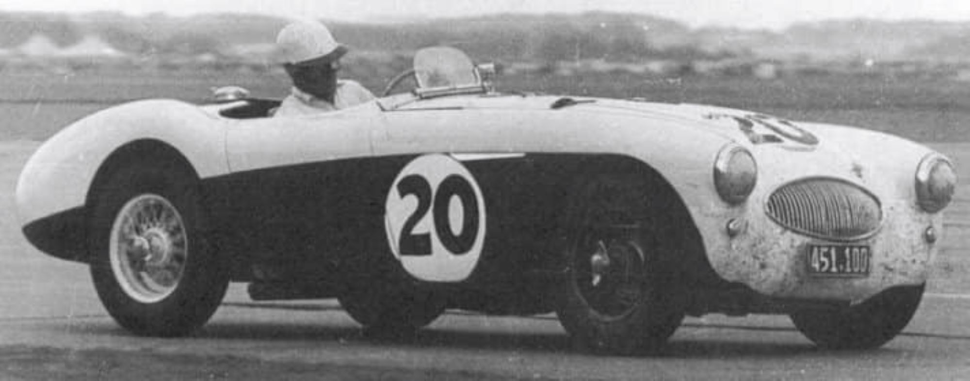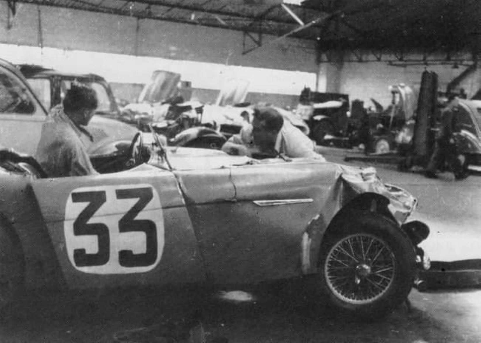Driver was Tommy Wisdom, a long time friend of Donald Healey and had co-written the first book on the marque " The Austin Healey " published in 1959.
