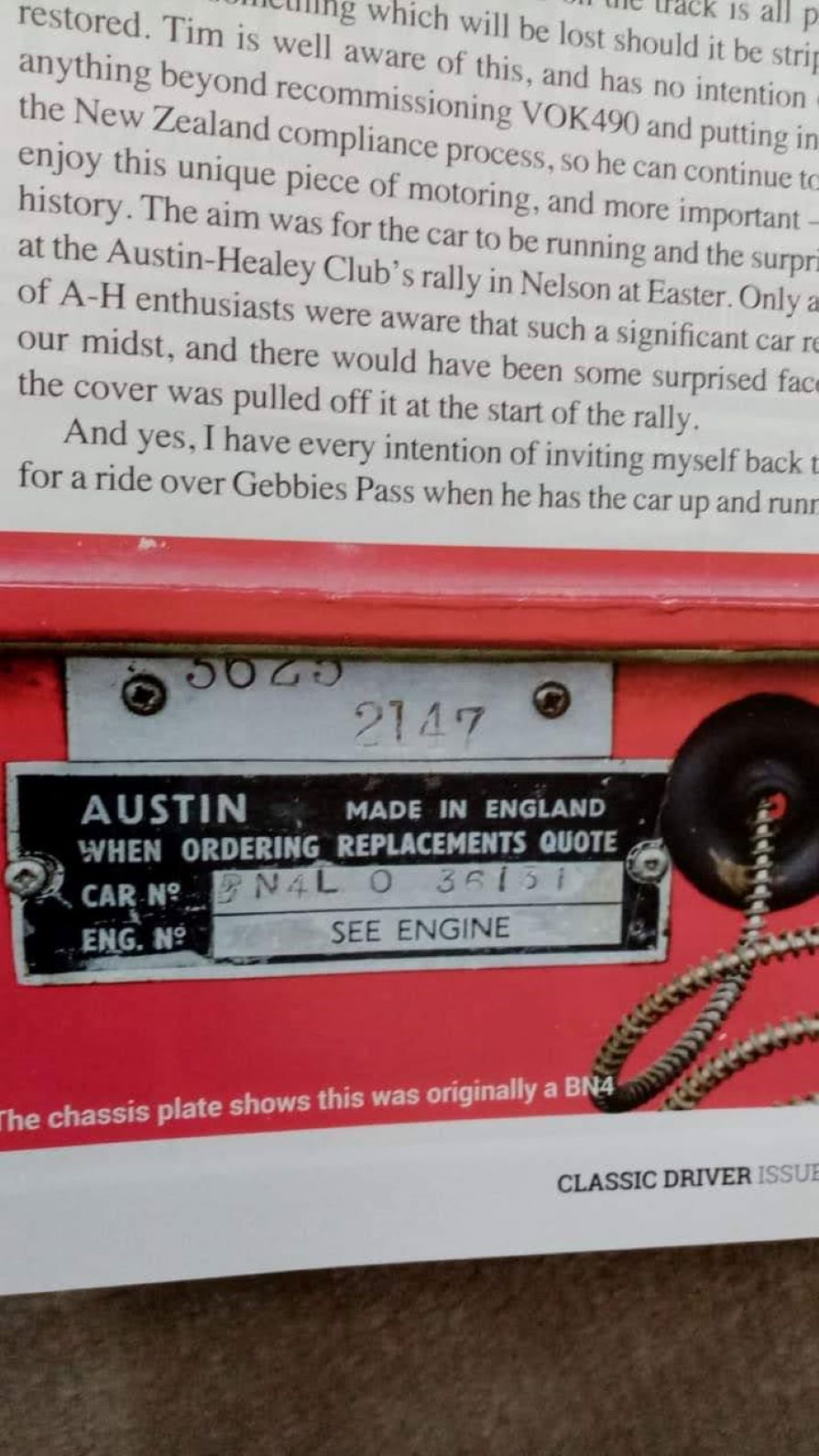 Recently dug out an N Z Classic Driver Magazine from 2015 Issue #60 - May - June 2015- which features two AH articles, one on VOK490 the Record Breaking LHD 100 Six, from 1958 that became a works 3000 Rally and Race Car in 1960,