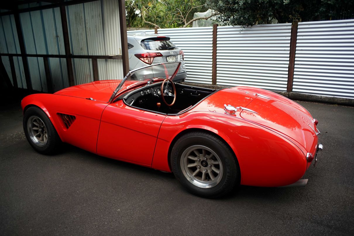 Old Mate BMC BOY - 1959 AH 3000. a 2 Seater car, I think - checking as on wires not the Minilites that were on his car last time I saw it several years ago, and in photos from back then too !!.