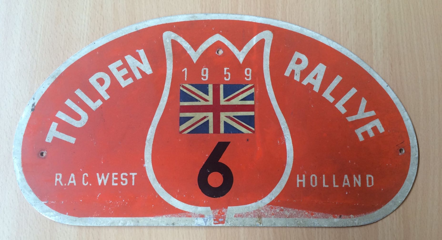 A Tulpen - Tulip - Rally Car Plaque, from another Big Healey BMC Entry, PMO202 in 1959, of Pat Moss and Ann Wisdom