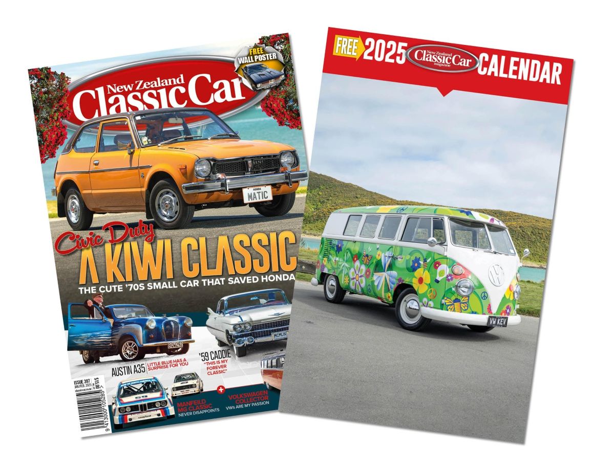 The Cover of the NZ Classic Car issue and the 2025 Calendar just issued. NZCC Publicity image