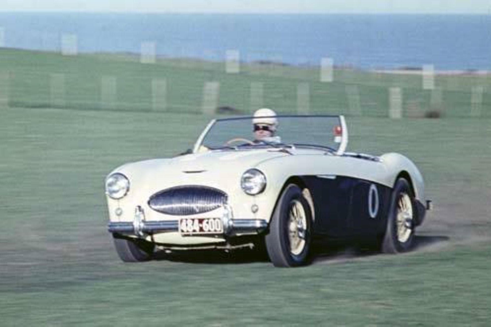 Photo was posted in Monochrome on an " Austin Healey 100S " page, by Ivo Visser and was followed by a colour photo from Rainer Jordan archives.