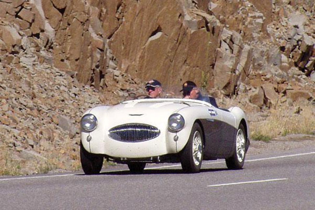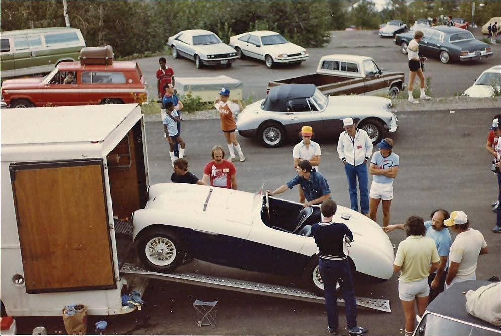 AHS3707, with Donald Healey in the drivers seat at Snowmass, Co, the July 1982 event ;