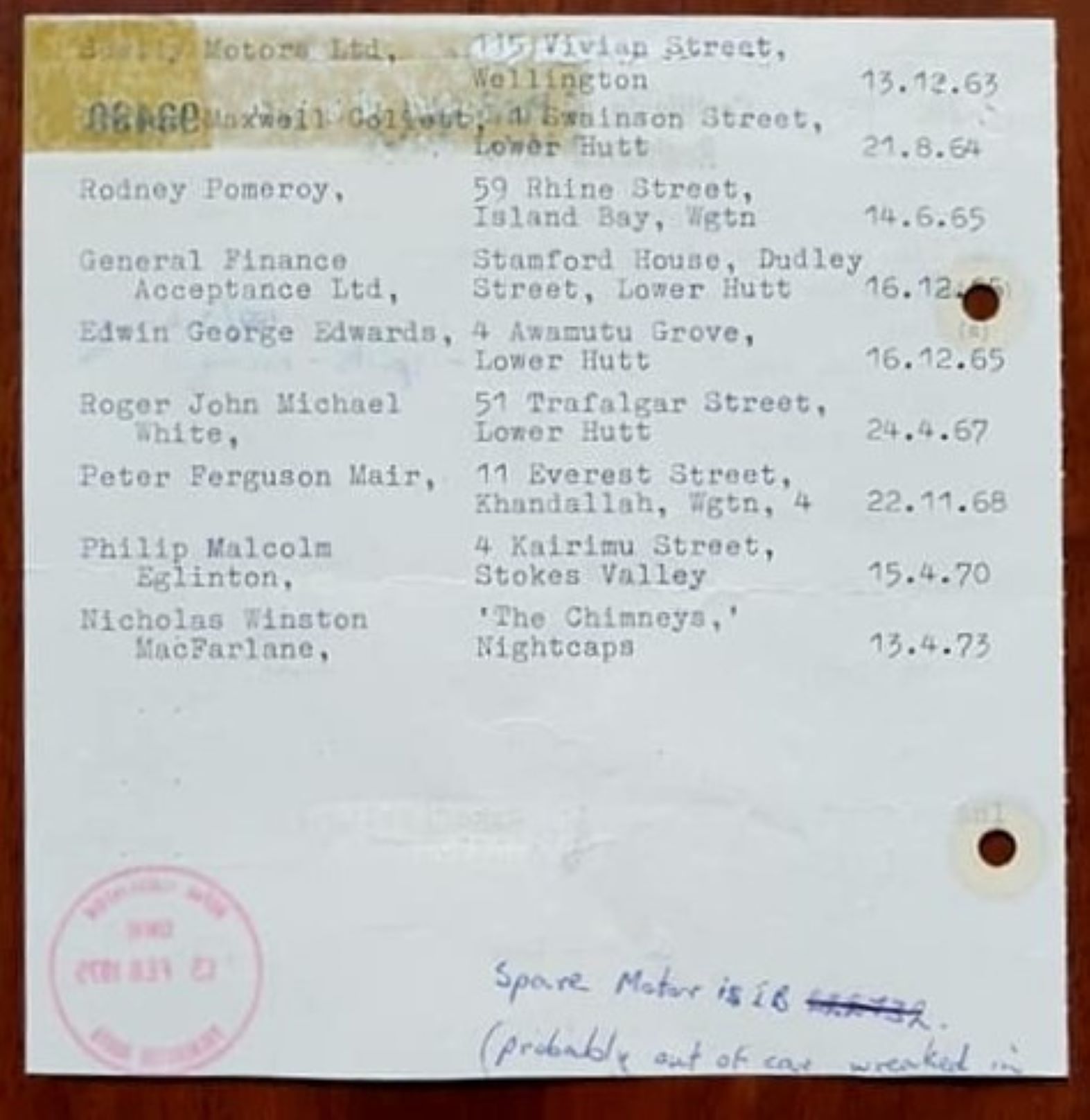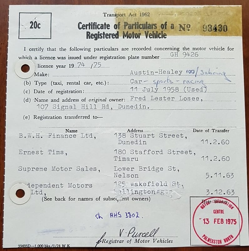 The current owner has the last New Zealand Number Plates " GH9426 " - issued in the 1970's when with Nic MacFarlane.